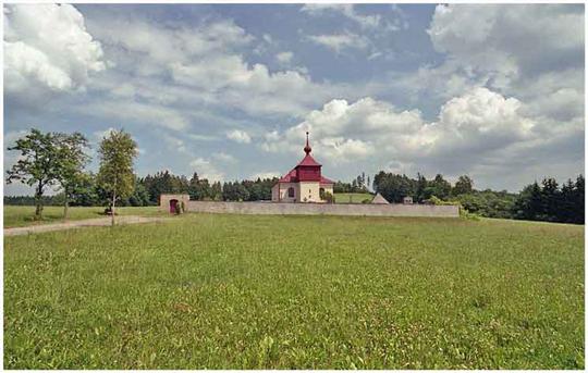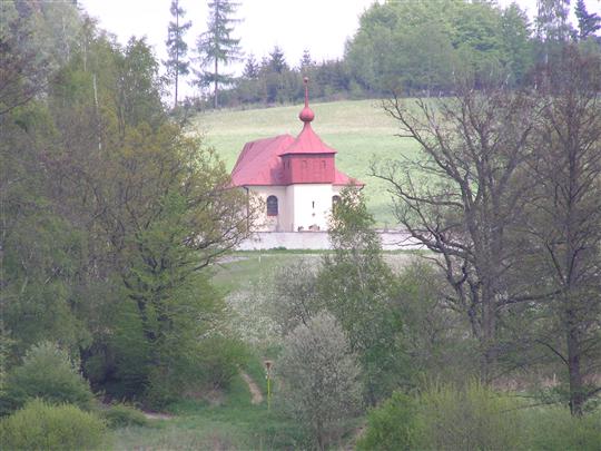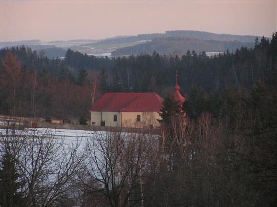 kostel - foceno od křížku ze vsi